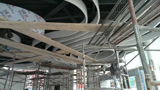 金屬吊頂?shù)陌惭b與一般的工程設備安裝有著很大的區(qū)別。常見的工程設備安裝,一般都是由工廠送達整臺設備,到現(xiàn)成后就位,然后接通管道和線路就算完工。因此,它的主要工作量是設備就位和接通線路。而金屬吊頂?shù)陌惭b,則是把一大批散件即單塊金屬板,按圖紙邊懸吊邊拼接,直至完工。其特點如下: 一、從零散到整體成型 吊頂板成品面積一般都很小,出廠時之多不超過3平方面積。僅僅從單塊的小板出發(fā),人們是無法看到整個工程的形狀的,因此也無法體現(xiàn)出吊頂?shù)墓δ堋V挥邪堰@些零散的吊頂板拼接在一起,才能實現(xiàn)工程的設計要求。在這個過程中,環(huán)節(jié)多、工作量大,而且每一步都要精工細作。這是一個名副其實的“二次”制造過程。 二、突出人的因素 無論如何改進設計或優(yōu)化結構,都無法減少吊頂工程現(xiàn)場施工的工作量,而且也不可能采取機械化來代替手工勞動。這就造成了工程質(zhì)量必須依賴現(xiàn)場施工人員的素質(zhì)和勞動態(tài)度的局面。因此,組織一支優(yōu)秀的安裝隊伍,就成了工程管理的關鍵。而現(xiàn)在的實際狀況是安裝隊伍都是臨時拼湊的,不具備應有素質(zhì)。對此,唯一的辦法就是派出工程師,到現(xiàn)場指導、臨督安裝工作。 三、不可更改性 金屬吊頂?shù)牡甘怯泄S制造的,出廠是這些產(chǎn)品都已經(jīng)定型。到現(xiàn)場即...